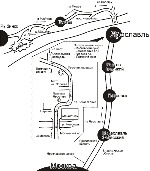 Ярославль - Тутаев - Рыбинск. При подъезде к Рыбинску поворот налево на